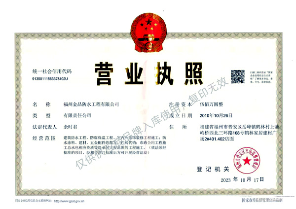 金品防水工程有限公司(JINPIN Waterproof)拥有