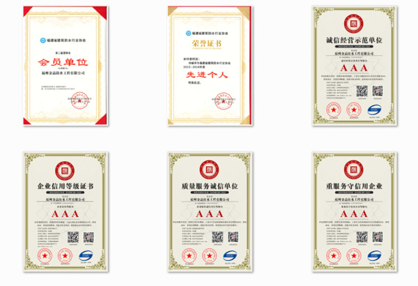 国家防水防腐保温二级资质,是福建省建筑防水行业协会会员单位、福州市装饰工程协会理事单位、福州市室内设计师协会理事单位、福州市建筑装饰协会理事单位。